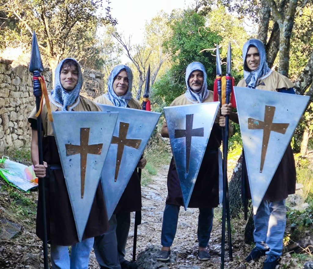 La presentadora del acto Beatriz Silvestre implorando la magia de la carrasca, arranca la aparición de cuatro soldados medievales sobrarbenses que velaran el acto
